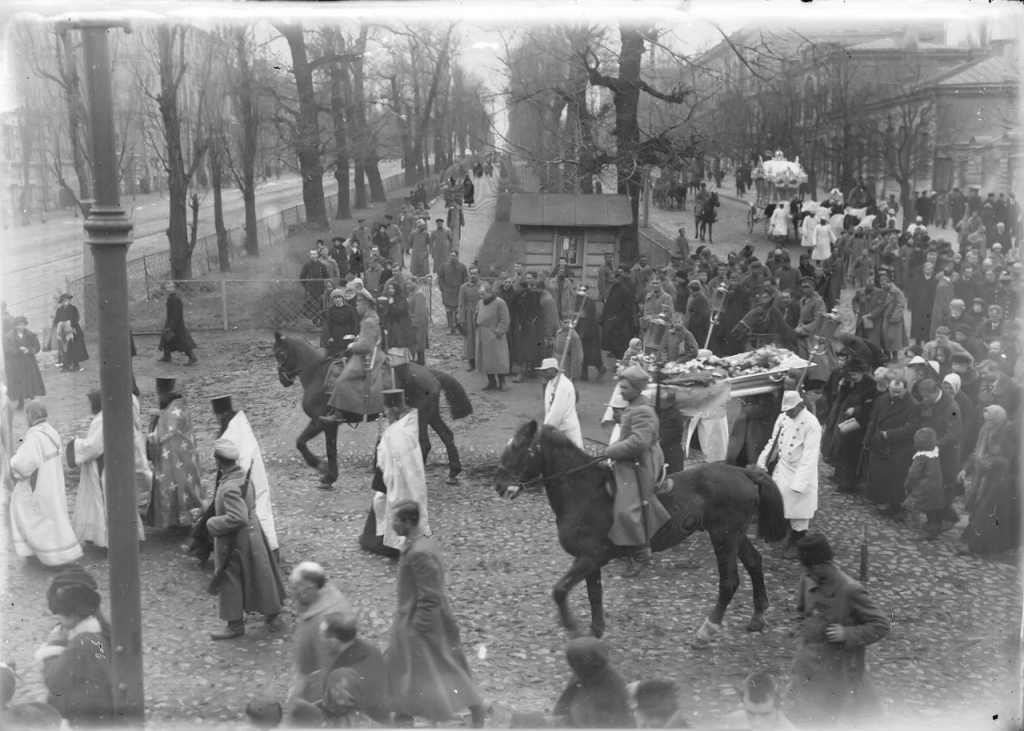 На фотографиях – похороны в Киеве человека, который считается классиком украинской литературы. Более того, он – один из создателей искусственного украинского языка, поднаторевший в превращении полонизмов в «українські іменники, прикметники, дієслова». Звали его Иван Нечуй-Левицкий. Однако упражняться в сарказме, вспоминая его, не станем. Человек он был неплохой, хоть и чудаковатый. Нрав имел покладистый, но прожил холостяком, поддаваясь на уговоры других лиц, каждый раз умевших убедить, что избранница – не та: либо слишком красива и легкомысленна, либо слишком богата, либо нехороша внешне. Умер 2 апреля 1918 печально – лишённый пенсии, в полной нищете, в богадельне, в период, когда на карте мира высовывали чубы первые «опытные образцы» украинской государственности. С моей точки зрения, плоды творчества Нечуй-Левицкого были настолько украинскими, насколько может быть украинскими творения малоросса, считающего украинство максимальной благостью. Писал он комедии и водевили, но удивительны