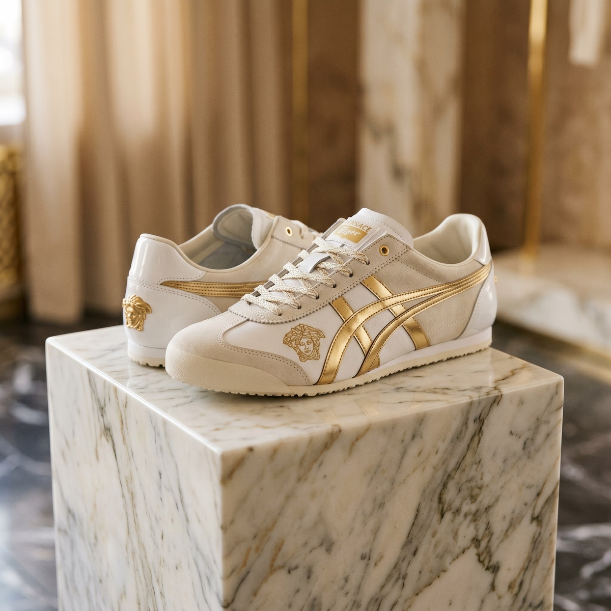Versace решил, что кроссовкам тоже нужен вечерний выход — и пошёл коллабиться с Onitsuka Tiger