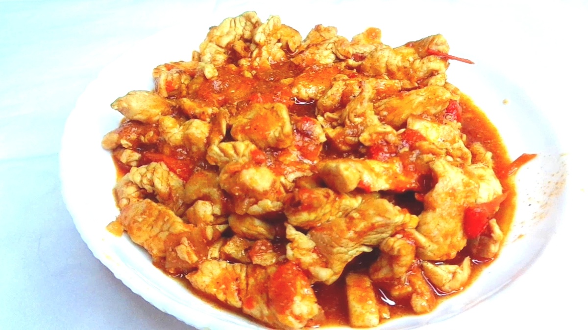 Изысканное блюдо, которое принесет тепло домашнего уюта и сытное наслаждение – индейка с болгарским перцем в ароматном томатном соусе. Этот рецепт станет настоящей звездой вашего семейного обеда или ужина, поражая своей простотой приготовления и богатством вкуса. Нежное филе индейки, тающее во рту, в сочетании с яркими красками болгарского перца и сочной сладостью томатного соуса – настоящее кулинарное произведение искусства. ============================ Филе индейки - 600 гр. Перец болгарский - 2 шт. Лук - 2 шт. Чеснок - 1-2 зубчика. Томатная паста - 1 ст.л. Вода - 300 мл. Соль - по вкусу. Черный молотый перец - по вкусу. ================================= 1. Болгарский перец нарезать соломкой. 2. Лук нарезать полукольцами. 3. Филе индейки нарезать соломкой. 4. Чеснок мелко порубить. 5. Выложить чеснок на разогретую сковороду с растительным маслом, обжарить на среднем огне пол минуты. 6. Затем к чесноку добавить нарезанное филе индейки, перемешать. Обжарить индейку на среднем огне до