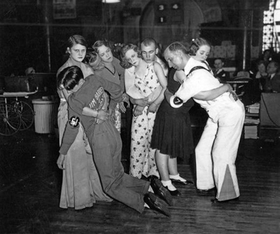 31 марта 1923 года в Нью-Йорке завершился танцевальный марафон, который считается первым в США. Победительницей стала Алма Каммингс: она продержалась на ногах 27 часов и перетанцевала шестерых партнеров. Америку буквально захлестнули такие марафоны. Во время Великой депрессии для многих бедняков, потерявших работу, они стали единственным способом выжить: призовые суммы иногда доходили до 5000 долларов. Но условия становились все более жестокими. Марафоны длились месяцами, правила разрешали отдыхать 15 минут каждые 2–3 часа. У многих танцоров начинались галлюцинации, а иногда на танцполе и умирали. Но это был выгодный бизнес: зрители платили за билеты и делали ставки, как на ипподроме. Это бесчеловечное развлечение запретили только в конце тридцатых.