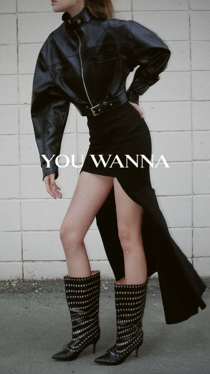 Один из фаворитов вот уже второй сезон подряд - укороченная кожаная куртка с объемными рукавами. Тот самый дерзкий акцент для любого образа.
