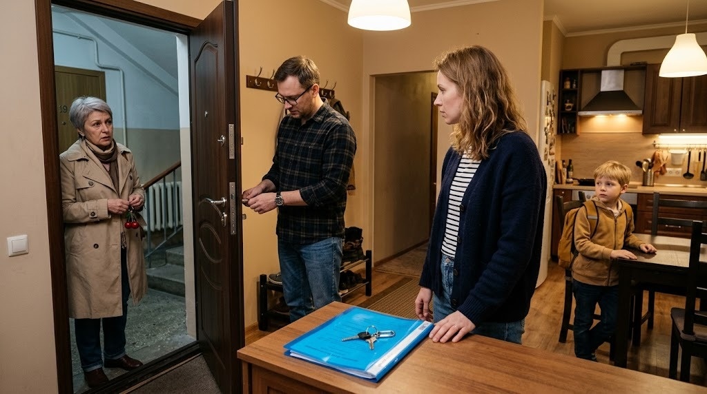Она вставила ключ в замок и сразу поняла: это уже не их дверь. Хотя коврик был их, пакет с укропом у ног был их, и сын уже спросил, почему папа молчит.