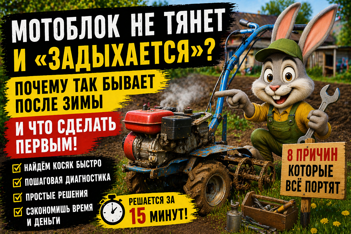 Весной картина знакомая: выкатил мотоблок, завёл, дал газу — а он не едет как надо, бурчит, тупит, дымит и будто просит не мучить его дальше. И тут у народа сразу фантазия: “всё, поршневая”, “всё, карбюратор умер”, “всё, сезон начался с приключений”.