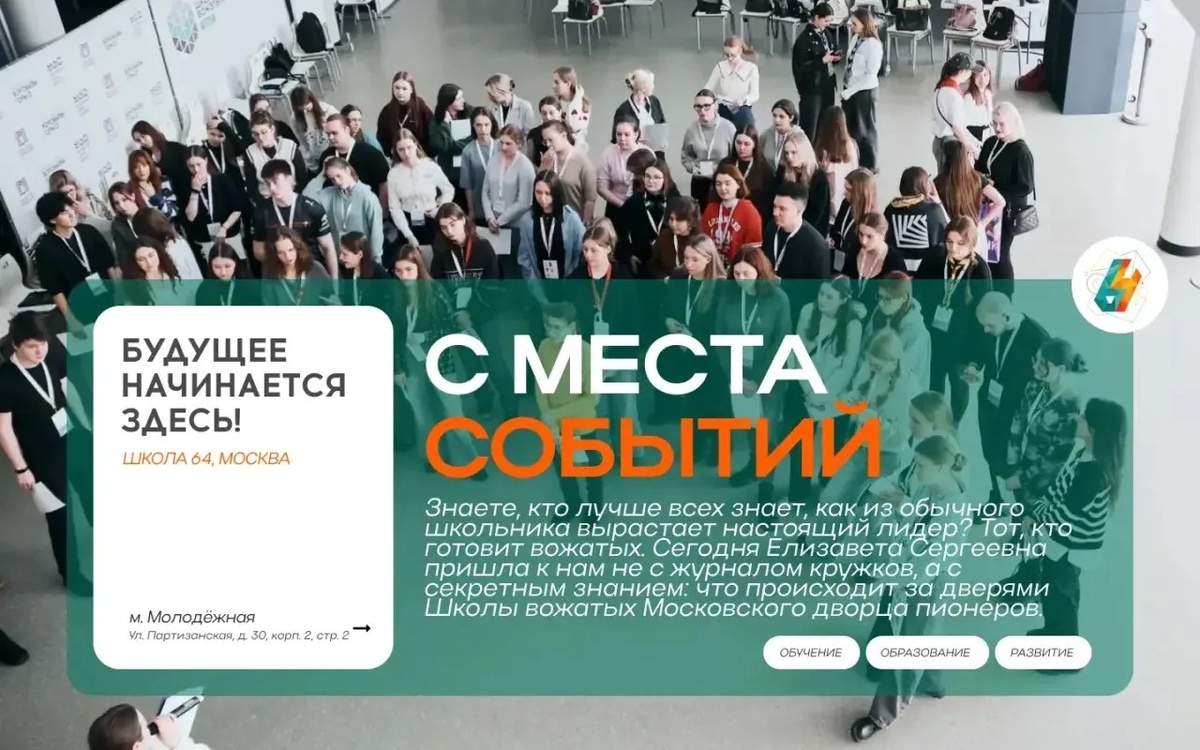 Рубрика #с_места_событий: в гостях — наш педагог-организатор Елизавета Сергеевна Малютина! Мы уже рассказывали вам о её поездке на Всероссийский семинар по развитию вожатского сообщества России, а теперь решили узнать, как же нам в будущем можно туда попасть. Сегодня Елизавета Сергеевна пришла к нам не с лекцией, а с секретным знанием: что происходит за дверями Школы вожатых Московского дворца пионеров. Спойлер: там не только песни под гитару и теория педагогики. Там рождаются те самые люди, которым дети доверяют свои секреты. Передаём слово нашей гостье: «В этой рубрике вы уже слышали истории учеников нашей школы, которые ездили в лагерь, но сегодня я расскажу вам о том, что происходит "за кулисами" педагогики. А именно — о Школе вожатых Московского дворца пионеров. Многие знают Дворец пионеров как место легендарное. Но мало кто видел, как внутри него кипит жизнь будущих вожатых. В этом году я в роли наставника, и вот что я могу сказать со стороны, глядя на ребят. Это не просто курсы