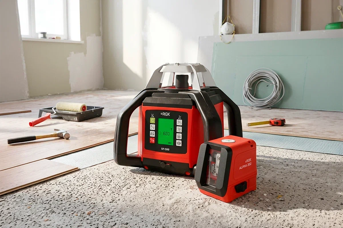 Для более серьезных задач в помещениях используются 3D и 4D модели. Например, RGK ALPHA 3D-D проецирует сразу три плоскости на 360 градусов. Это позволяет одновременно заливать стяжку, монтировать перегородки и выставлять маяки без постоянного перемещения устройства. Флагманские решения вроде RGK ALPHA 4D добавляют еще одну горизонталь, что упрощает работу под самым потолком или у самого пола. Такая проекция охватывает всё пространство вокруг, позволяя мастерам работать в разных углах комнаты одновременно.