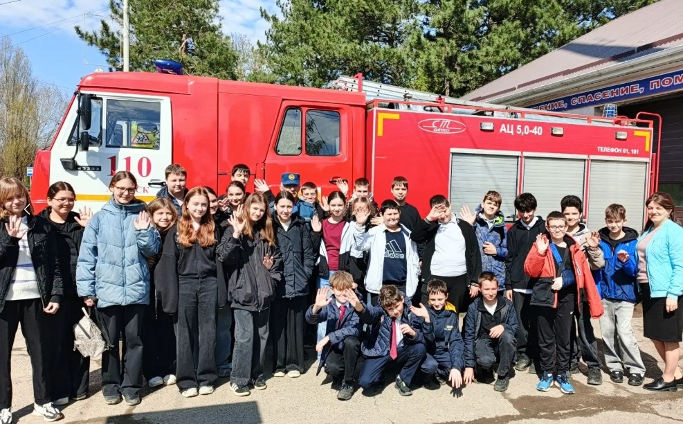 Ученики 6‑го класса средней школы № 3 города Абинска побывали на увлекательной экскурсии в 110 пожарно-спасательной части. Цель мероприятия — познакомить ребят с профессией пожарного, рассказать о правилах пожарной безопасности и показать, как работают спасатели. Экскурсия началась с краткой беседы с опытным сотрудником МЧС. Он напомнил школьникам основные правила поведения при пожаре: не паниковать, немедленно звонить на единый номер вызова экстренных оперативных служб по номеру 112, не прятаться в помещениях, а стараться покинуть здание. Особое внимание было уделено тому, как предотвратить возгорание: не играть со спичками, не оставлять без присмотра электроприборы, быть осторожными с газовой плитой. Также, в преддверии майских праздников, провели краткую беседу о том, как вести себя на природе. После теоретической части ребята отправились на осмотр пожарной части. Их ждали настоящие открытия: Школьники увидели пожарные автомобили, узнали об их оснащении и назначении разных отсеков.