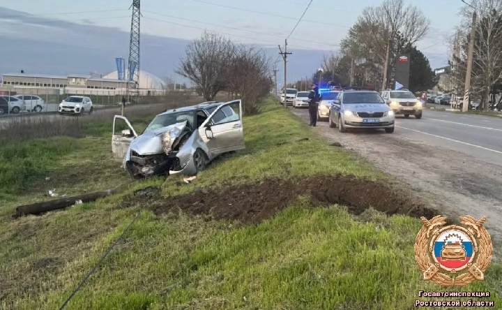 В Таганроге легковушка снесла опору электропередач, пострадали два человека