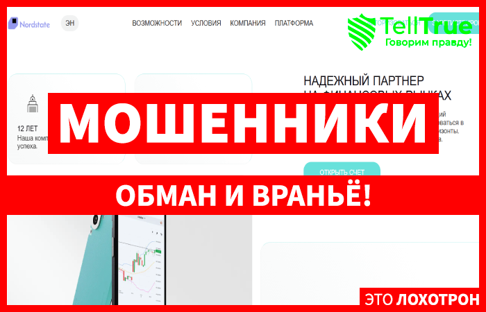 Еще один лжеброкер громко и уверенно заявляет, что он «НАДЕЖНЫЙ ПАРТНЕР НА ФИНАНСОВЫХ РЫНКАХ», пытаясь активно привлечь к себе внимание. Компания Nordstate (nordstate.org) является типичным дешевым творением мошенников, созданным с целью обмана. именно поэтому от брокера стоит держаться, как можно дальше. Опубликованная на этом сайте информация не имеет даже минимального отношения к реальности и доверять ей не стоит. мошенники просто привлекают на свой липовый терминал и активно грабят. Полный обзор: https://telltrue.net/eto-lohotron/nordstate/