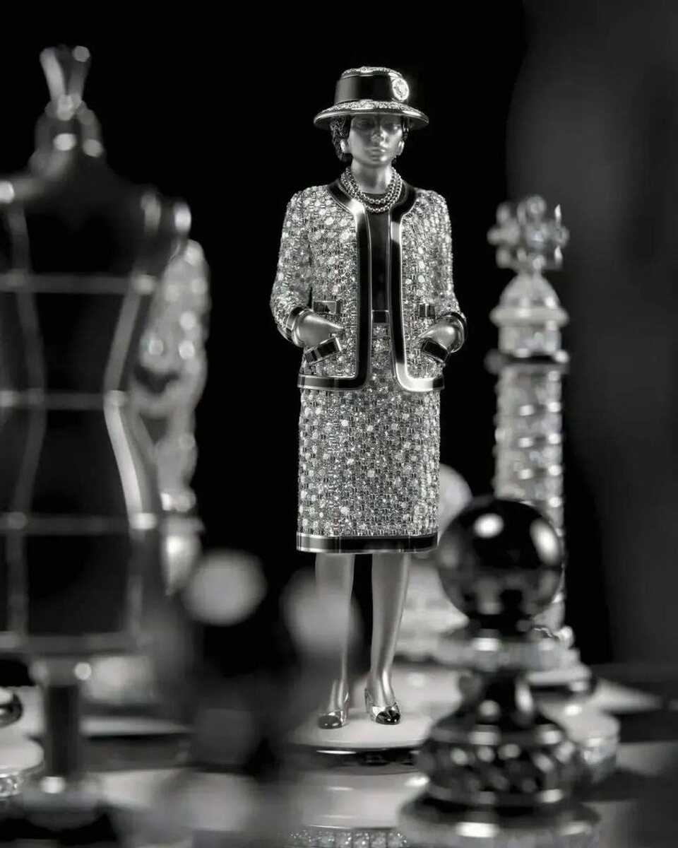 керамический шахматный набор, разработка которого на швейцарской мануфактуре в Ла-Шо-де-Фон заняла три года. Роль черной и белой королевы в нем выполнняют фигуры Габриэль Шанель, которые превращаются в кулон со встроенными часами; слонов — портновские манекены, а ладей — колонны Вандомской площади. Для инкрустации использовалась новая техника «твидовой закрепки», при которой бриллианты разного размера имитируют фактуру ткани.