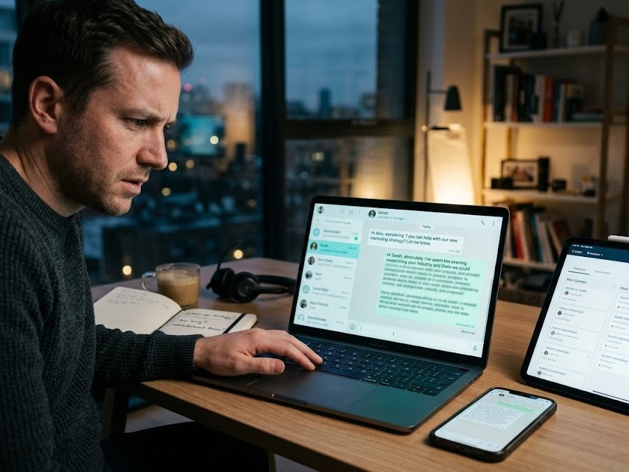 Это момент, где вы его потеряли. Клиент не исчезает. Он сравнивает. Пишет нескольким компаниям и выбирает того, кто быстрее и понятнее довёл до следующего шага. Если после первого сообщения нет движения — он уходит туда, где оно есть. Первое сообщение не даёт ценности и не ведёт дальше. Типичный ответ: