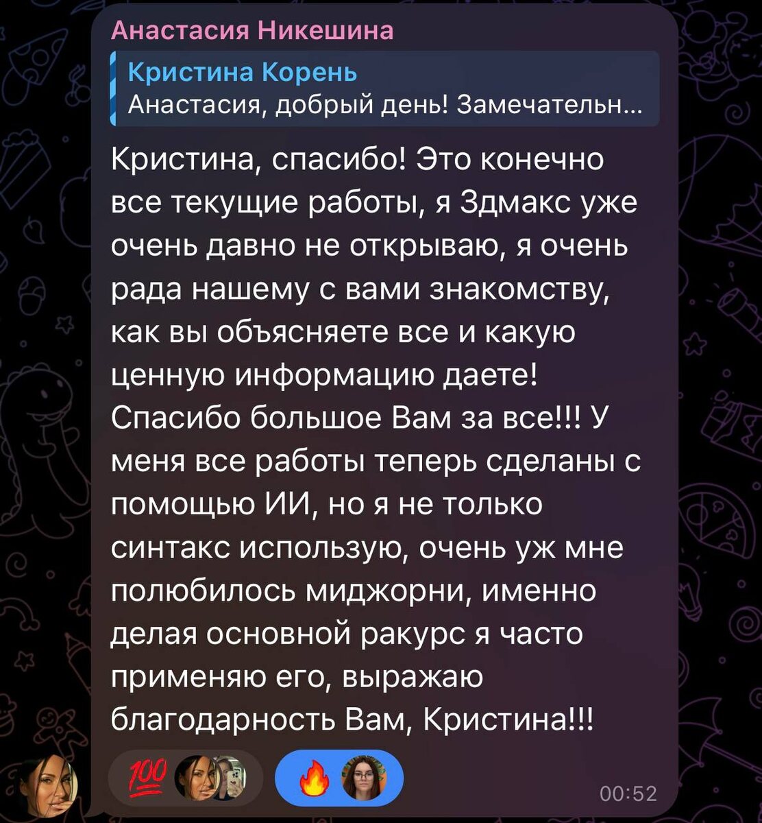 ? 🤫 Ситуация: студентка проходит у меня большой курс «Нейромаг», заканчивает его, начинает применять нейросети в своих проектах. Казалось бы, всё, цель достигнута, можно выдохнуть. Но через какое-то время она снова приходит. На этот раз на интенсив «Нейромаг: Визуализация», чтобы прокачать навык глубже. Это Анастасия Никешина. И в визуале к посту — её очередной проект (кухня-столовая), сделанный с помощью нейросетей 👆🏻👆🏻👆🏻 3ds Max она, кстати, уже давно не открывает. Это и есть тот самый момент, когда понимаешь, что обучение работает. Не потому что я так сказала, а потому что человек реально перестроил свой рабочий процесс и больше не возвращается к старым инструментам. И знаете, что для меня самое ценное? Когда студенты возвращаются. Не потому что им чего-то не хватило, а потому что им зашло. Они доверяют, идут дальше, повышают квалификацию. И добиваются результатов, которые видно на скрине и в работах. Кстати, путей к нам несколько: ✅ Можно пойти на большой курс, разоб