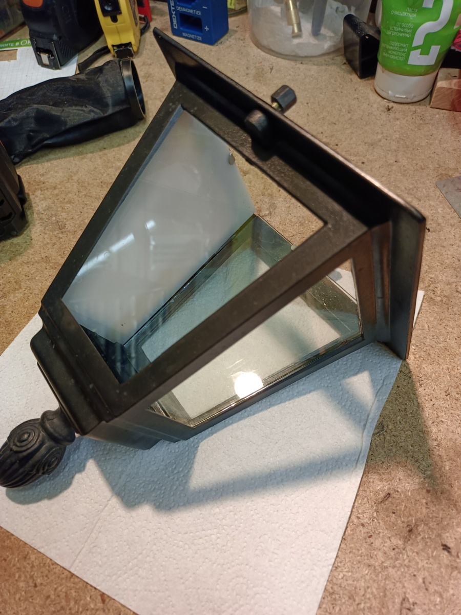 Собрав конструкцию и посмотрев на свет показалось что кусок белого пластика практически не прозрачный. Ладно. Пусть так и будет. Зато закрытая конструкция окажется.