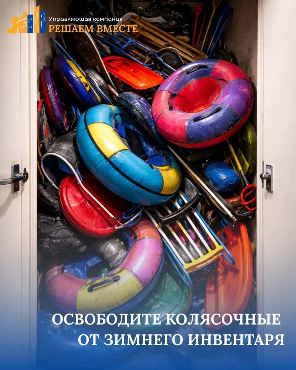✅ 👶 На дворе апрель месяц: деревья распускаются, птички поют, и даже надоедливые самокаты уже активировались. Но! Помещения, предназначенные для хранения колясок, все еще переполнены зимним инвентарем, который занимает полезное пространство. 🛷 Просим всех собственников убрать из колясочных тюбинги, ледянки, лыжи, санки и прочие неактуальные предметы — это позволит семьям с маленькими детьми использовать помещение по прямому назначению. 🤝 Проявите уважение к своим соседям! С уважением, Ваша управляющая компания "Решаем вместе" МАХ|Vk|Ежедневная уборка|Отзыв про УК|Chat-bot