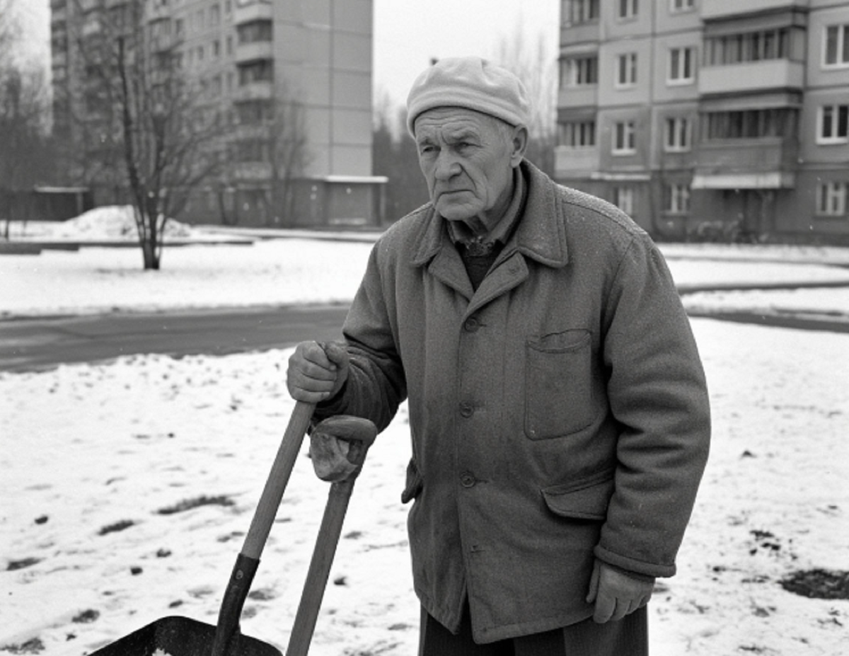 — Работа, — Михаил Иванович опёрся на лопату. — Снег убрать надо.