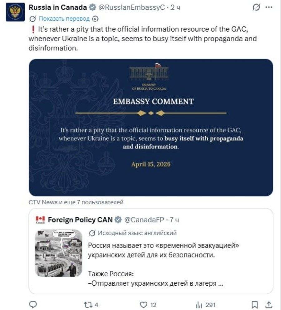 🔥«Занимаются дезинформацией»: дипломаты РФ ответили на отчеты Оттавы о правах украинских детей