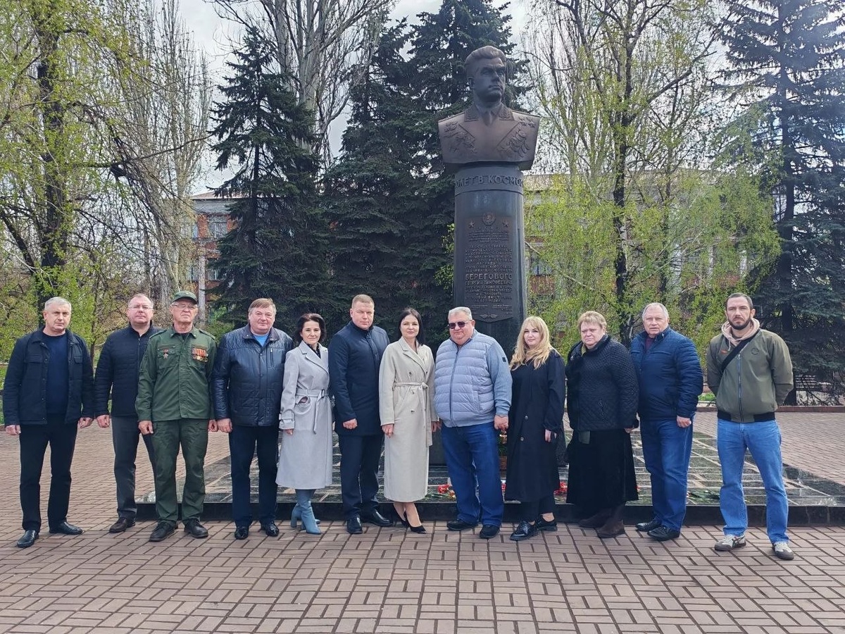 участие в возложении цветов к памятнику дважды Герою Советского Союза, лётчику-космонавту Георгию Тимофеевичу Береговому.🚀 15 апреля исполнилось бы 105 лет выдающемуся земляку, чья судьба неразрывно связана с Енакиево. Именно здесь начался его путь в небо, который впоследствии привёл его к звёздам.✨ Память о Георгии Береговом бережно хранится жителями города. Возложение цветов стало данью уважения его подвигу и значительному вкладу в историю страны.💥