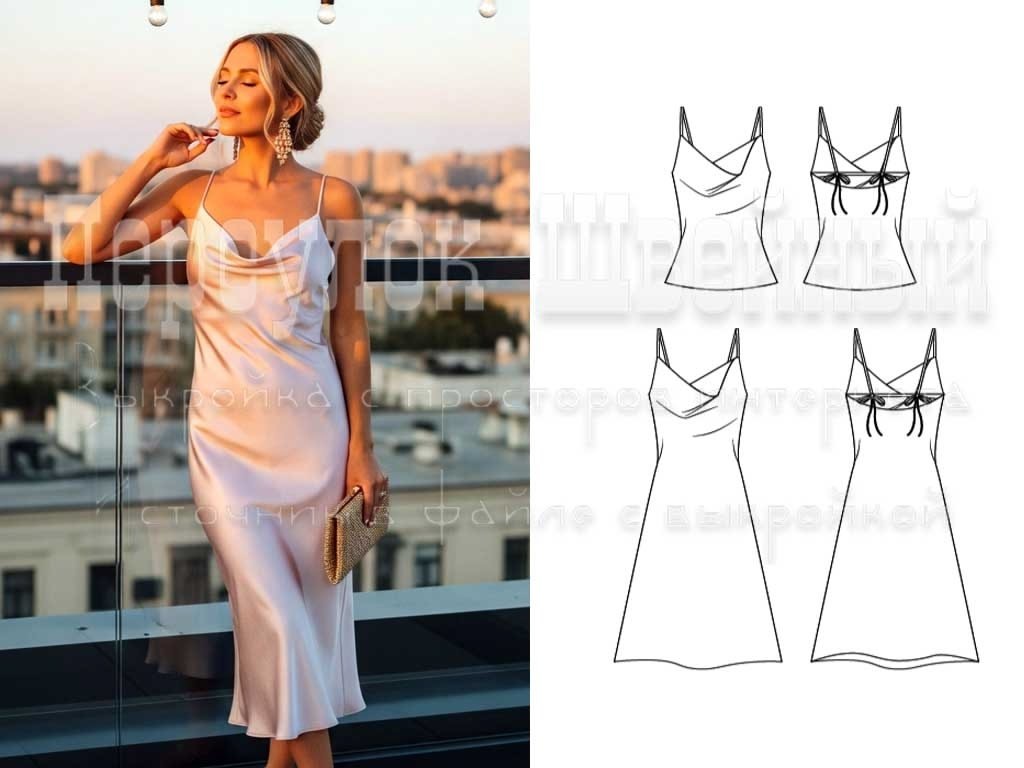 Выкройка топа и платья комбинация XXS-XXL