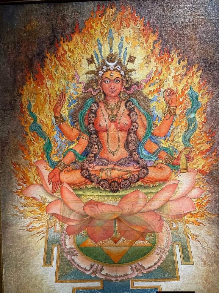 Шива сутра 1.4 “Источник знания — матрика” Что такое “матрика”. Буквально это означает “маленькая мать”. Это — источник. Знание происходит из своего источника. Кто эта “маленькая мать”? Если заглянуть в список Лалита сахасранамы, прославление тысячи имён Лалиты Трипурасундари, верховной богини-матери почитаемой во многих шакта-сампрадаях, то в строке 577 будет определение: मातृकावर्णरूपिणी mātṛkāvarṇarūpiṇī. Оно означает “Та что существует в форме слогов составляющих алфавит”. 51 акшара санскрита — это матрика. Алфавит подразделяется на шесть групп, которые почитаются как шесть чакр от первой - мула адхары, до межбровной - аджни. Знание возникает в аджне. “Варна” означает не только слог, но и “цвет”, буквально краску. Слоги это и цвета. Речь поэтому цветиста. Матрика — это фундаментальная целостность Шакти и Шивы. Это проявляется в форме самого знака акшары, где эка-амша, изменяемая левая часть знака это Шакти, а неизменная правая часть знак