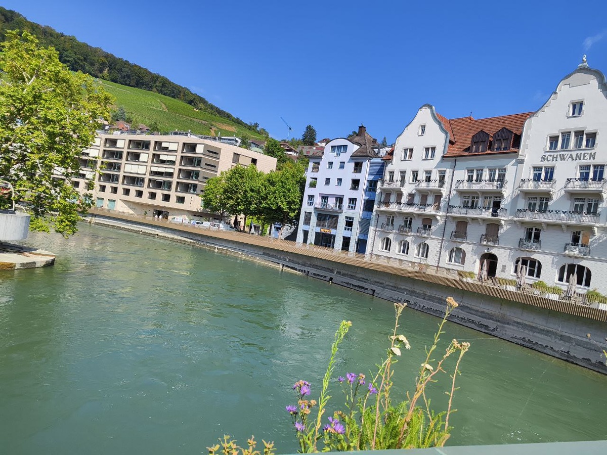 Иногда я знаю что-то заранее, даже если об этом нигде не написано. Я была уверена, что в Бадене есть открытые термы, хотя ничего не видела и не слышала. Поэтому в один из ленивых дней я села в поезд и поехала в Баден. Взяла с собой купальник, тапки, вещи, в которых можно переодеться на улице, получился целый рюкзак. Я ничего не знала об этом городе, только четкое ощущение, что ванны там есть и они бесплатные. У меня даже не было альтернативного маршрута, на случай, если я ничего не найду. Когда я вышла с вокзала, то некоторое время бродила вокруг, пытаясь сориентироваться. Было ощущение, что я здесь впервые и одновременно как будто уже знаю, куда идти. Я не смотрела карты, а озиралась вокруг и одна из дорог мне показалась правильной. Я пошла вниз по старой дороге. Странное чувство, когда ты не ориентируешься, но всё равно идёшь уверенно. И в какой-то момент я вышла к новому зданию. Мне это показалось очень странным, будто его тут не должно быть. Я как-будто знала, что открытые ванн