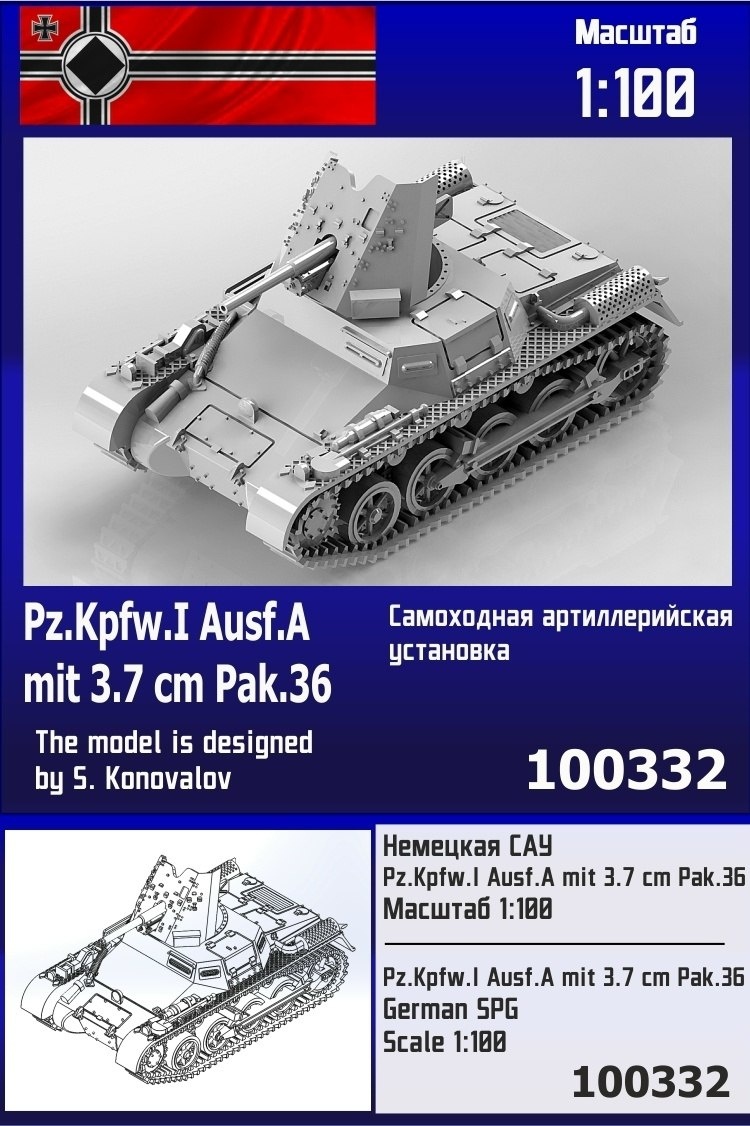Минская Zebrano выпустила смоляную модель немецкой САУ Pz.Kpfw. I Ausf. A mit 3,7cm Pak.36 в масштабе 1/100 (15 мм):