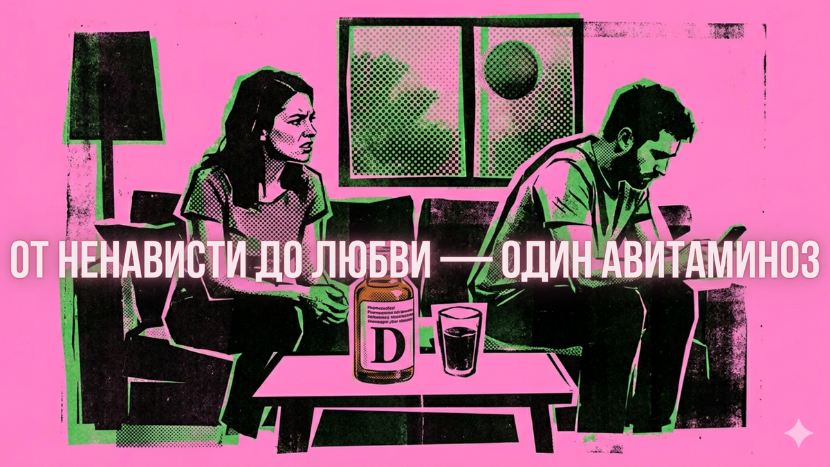 Марина из нашего кейса сдала анализы. У неё оказался жуткий дефицит витамина D. Через три недели приёма она перестала беситься на носки партнёра. Она не влюбилась заново, но её мозг перестал воспринимать его как врага. Они пошли в терапию, и сейчас до сих пор вместе.
