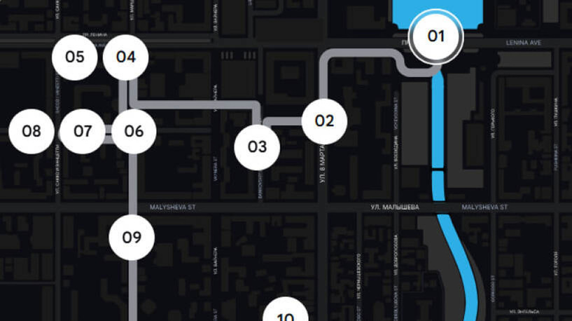 На сайте есть маркеры: при нажатии открываются карточки с описанием муралов, фотографиями, комментариями или видео. Пользователь может выбрать ближайший объект и идти дальше. Для тех, кто хочет пройти маршрут вместе с гидом, подойдет бот. Он знакомится с пользователем, советует, какую одежду выбрать и что взять с собой в дорогу. Телеграм-бот показывает, где находится мурал, объясняет, как до него добраться, а на месте рассказывает, как создавали работу: @streetartmarshrut_bot Информация доступна в текстовом, аудио- и видеоформатах. Экскурсия занимает около трех часов. Главная новость по теме
