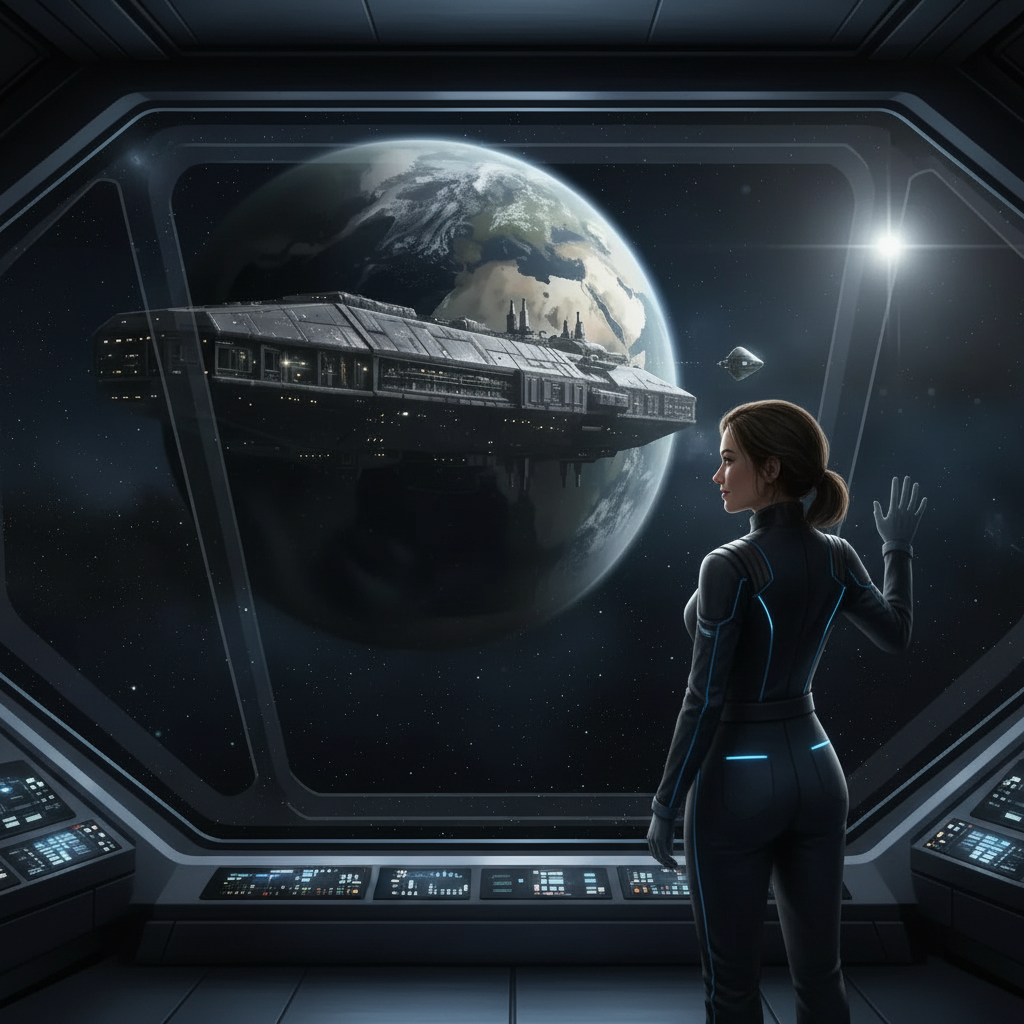 Корабль висел в пустоте. Огромный Ковчег надежды, помнил новые галактики, планеты, звезды. Он висел неподвижно, молча над Землей. Молчали и те кто был внутри. Слишком далеко. Слишком давно. Слишком больно. Впереди была новая планета, новый дом, новая попытка не разрушить все, к чему прикоснулись. Но сначала нужно было пережить эту ночь. За прозрачной стеной отсека умирала Земля. Она не взрывалась, не трескалась, не истекала лавой. Планета просто гасла. Медленно, как старинная лампа, в которой кончается топливо. Океаны мелели. Леса рассыпались пеплом. Города стояли пустыми — идеальные, мёртвые, никому не нужные. Лира стояла у стены и смотрела вниз. Ей не нужно было смотреть — она знала каждый изгиб материков наизусть. Она родилась там. Выросла. Любила. Потеряла. И теперь покидала. Или нет. За её спиной гудел Ковчег. Двадцать тысяч. Лучшие умы, сильнейшие гены, последняя надежда. Они летели к новой звезде, к новой попытке. — Совет утвердил список, — раздался голос. Мужской, усталый. — Ты