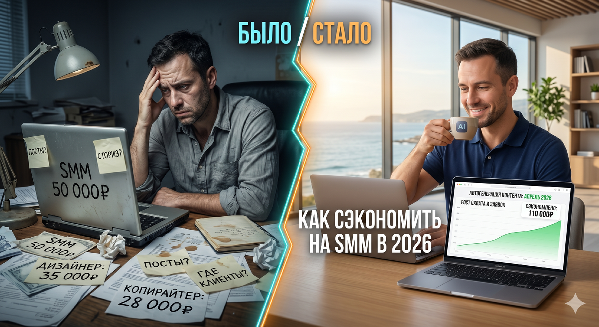 Кейс: Кондитерская. Девушка отдавала половину прибыли SMM-щику за ведение ВКонтакте, потому что сама не умела красиво писать о тортах. Мы отказались от подрядчика и автоматизировали процесс через единую платформу для постов. Результат: экономия 35 000 рублей в месяц при сохранении потока заявок на праздничные торты. Мой вывод: ручной труд в базовом SMM окончательно устарел.