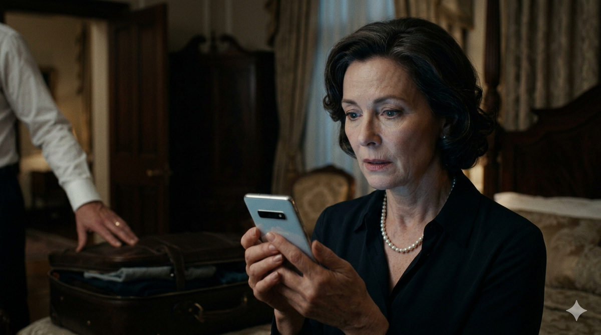 Виктор зашел в спальню, как всегда, безупречный: накрахмаленная рубашка, легкий запах дорогого одеколона, спокойная улыбка. Он подошел сзади, положил руки ей на плечи.