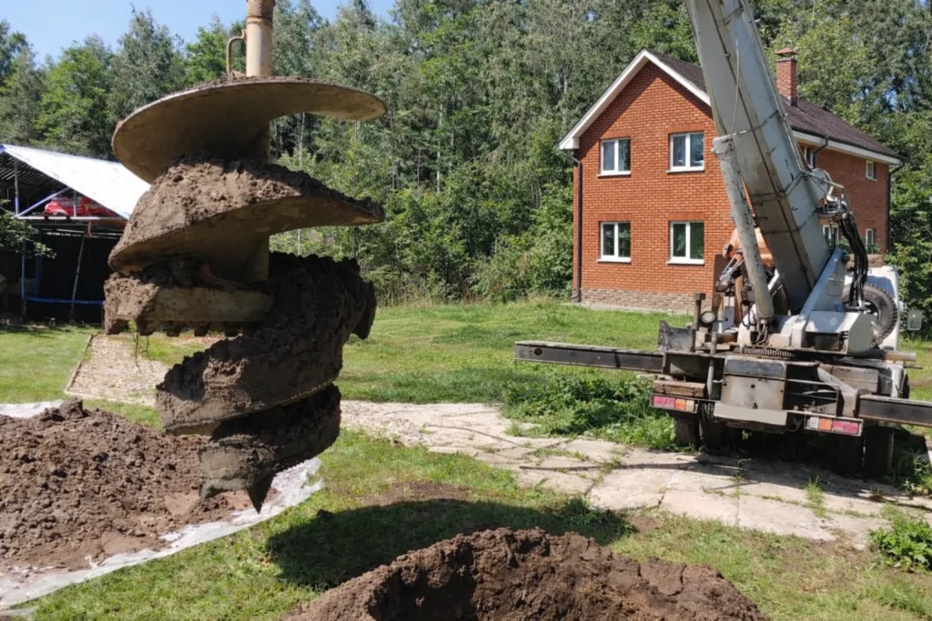 Представьте: приезжает небольшая машина (типа манипулятора или вездехода), выставляет бур и начинает вращать его в земле. Всё. Вам не нужно нанимать бригаду землекопов на неделю.Бурение: Машина быстро проходит грунт, оставляя за собой идеально ровную шахту.