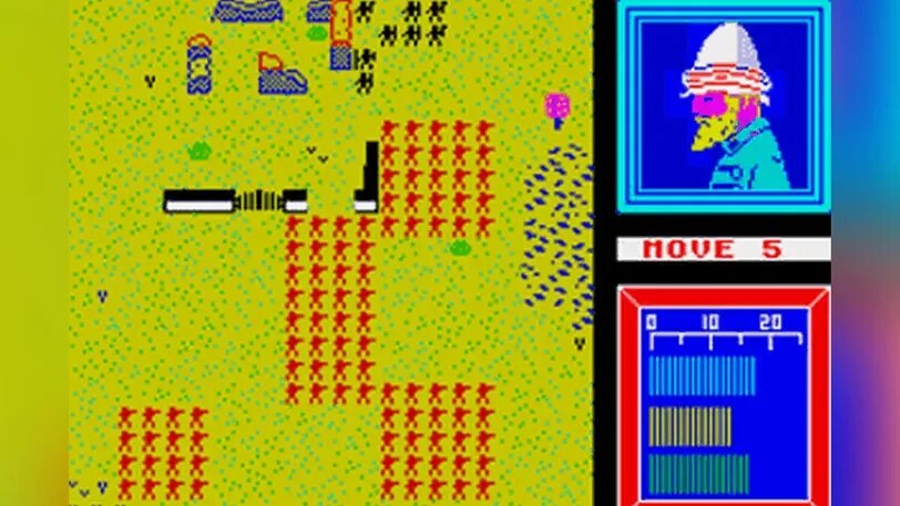 На четвёртом месте — моя личная любовь среди игр про танки на Спектруме. Vulcan — это тактическая операция, где каждый твой шаг важен. Ты командуешь союзными войсками, причем несколько наций сразу и часть из них в начале может быть нейтральна, или немецкими войсками. В отличие от более поздних, тут динамика поживее. Танки горят красиво (насколько это возможно в 8 бит), а пехота умеет окапываться. Самое сложное — это снабжение и мораль. Если твой взвод видит горящий танк комбата, он может драпануть с поля боя. Эту игру до сих пор вспоминают на форумах World of Spectrum как эталон баланса и сложности.