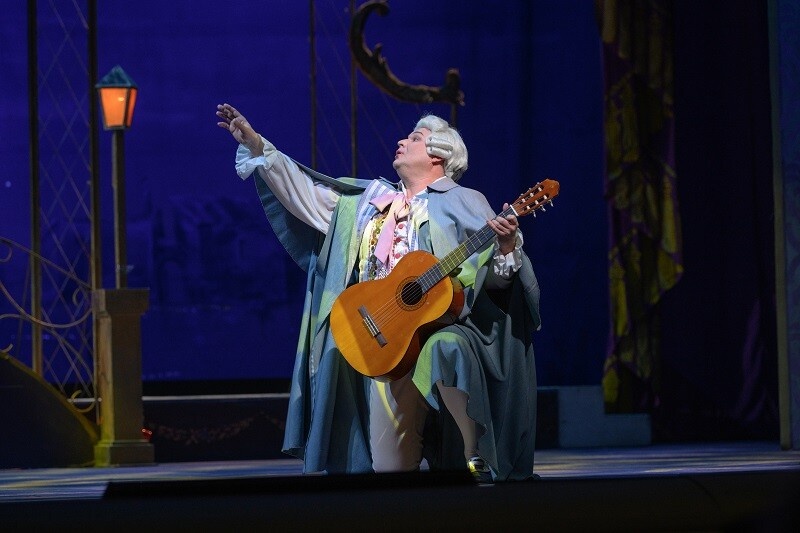 На открытии же фестиваля показали обновлённый спектакль Ии Бобраковой 1994 года — «Севильский цирюльник», который молодой режиссёр Филипп Евич отредактировал и привнёс в него некоторые новации. Изначальная работа Бобраковой — добротный классический спектакль в живописной сценографии Вячеслава Окунева: в фиолетовых тонах сценография, основа которой — лёгкие выгородки и занавесы-драпировки, а также традиционные костюмы эпохи Бомарше (парики, камзолы, кринолины, испанско-цыганский облик плутоватого цирюльника и нелепая шляпа дона Базилио с закрученными в трубочку полями и пр.). К возобновлению весь визуальный ряд капитально реновировали — картинка получилась яркой и эстетичной, хотя не все костюмы, надо признать, артистам подходят абсолютно — например, граф Альмавива выглядит не меньше, чем королём — роскошью и значительностью форм своего одеяния, а обтягивающее розовое платье Розины требует идеальной фигуры от исполнительницы. Концептуально тут всё предсказуемо — песни под балконом, фальшивый коновал и фальшивый же учитель музыки, пару финалов-переполохов (в конце каждого акта), правда, есть и небольшие купюры, однако сути дела они не меняют — комическая опера представлена ровно тем, чем и должна быть — без ненужной зауми и экстравагантности, словом, лёгким действом, тем самым шампанским, что ждёшь от самой популярной оперы Россини.