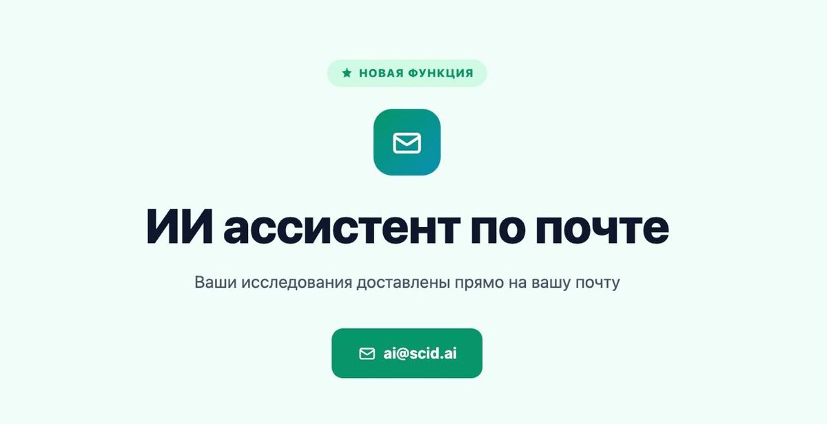 Теперь платформа помогает не только находить статьи, но и решать исследовательские задачи прямо через email. Достаточно отправить текстовый запрос на ai@scid.ai— и вы сможете получить результат без входа в платформу. Что умеет ИИ в почте? 📚 Обзоры литературы Глубокий анализ 30+ научных источников с цитатами и структурированной подачей материала. Это помогает быстрее погружаться в тему и собирать базу для собственных исследований. 💻 Программный код ИИ в почте может подготовить макросы для работы с таблицами, HTML-дашборды, аналитику, презентации и код для малой автоматизации. Полезно, когда нужно не только изучить литературу, но и сразу перейти к практической работе с данными. 🌍 Адаптивный перевод Автоматический перевод и локализация материалов на ваш предпочитаемый язык. Это упрощает работу с международными публикациями и делает научную информацию доступнее. 🔗 Подробнее об ИИ в почте: ссылка scid.ai