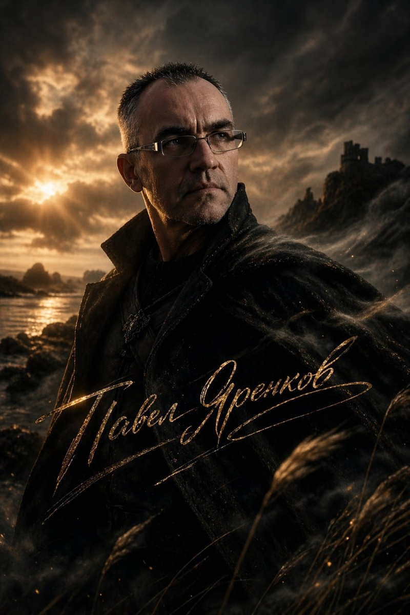 От подписчика pavluha1976 в нашей группе VK Use the provided image as a strict facial reference (high likeness, identity preservation, same facial structure, same eyes, same skin texture, same proportions, do not stylize or change the face). Create a cinematic, epic portrait of a man in a “warrior archetype” style. Scene: A dramatic natural environment such as a rocky coastline, mountains, or wild landscape at sunset. Stormy sky with heavy clouds, golden sunlight breaking through, volumetric light rays, wind in the air, атмосферный туман. Pose: Man standing strong and calm, slightly turned away from camera, looking into the distance. Expression is confident, composed, introspective, no aggression. Outfit: Dark, masculine clothing — long coat or cloak, layered textures, slightly worn, realistic (not fantasy armor). Lighting: Cinematic lighting — strong golden backlight (sunset) mixed with cool shadows, rim light on face and shoulders, high contrast, dramatic depth. Atmosphere: Wi