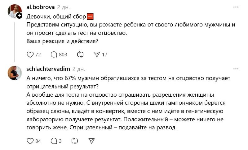 Если всё честно, почему тогда тест на отцовство вызывает столько эмоций? 🤨