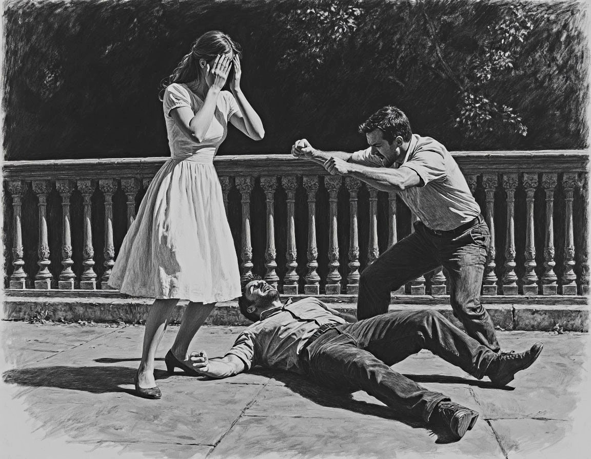 Ларин бьёт. Туда же — в подреберье. Сомов хрипит, глаза расширяются. Он смотрит удивлённо.