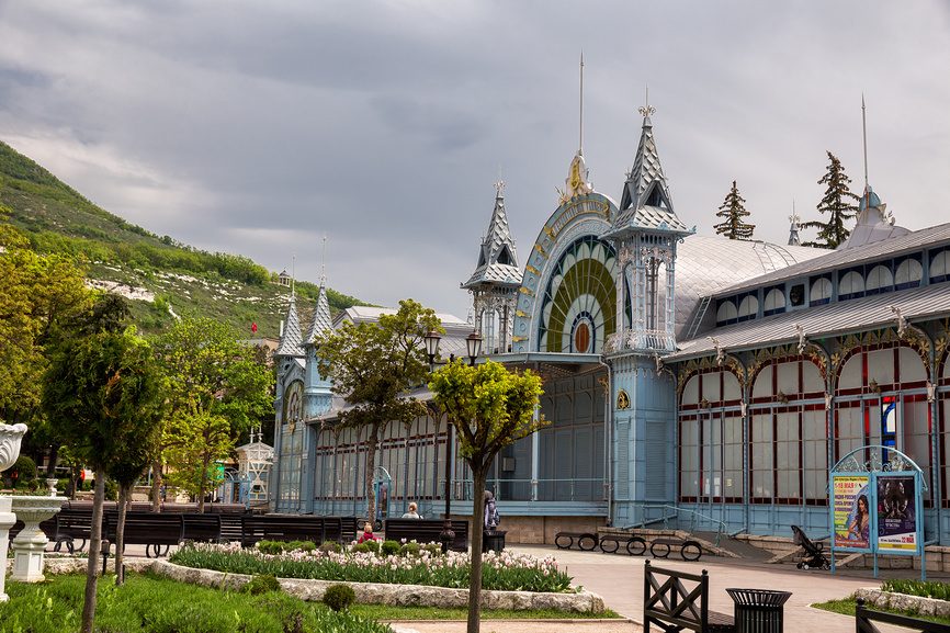 Железноводск - самый маленький и уютный из городов КМВ. Расположен в лесу, на склоне горы Железной. Славится своей архитектурой и уникальными источниками. Время в пути на маршрутке - 20 минут.