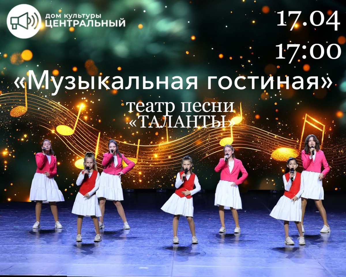 17 апреля в 17:00, театр песни "Таланты" приглашает вас в РДК "Центральный"на уютную "Музыкальную гостиную