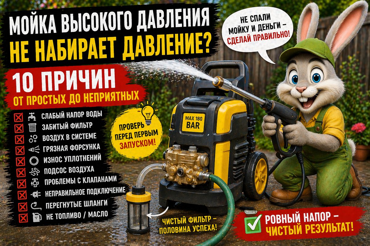 Не суетись. Если мойка высокого давления не набирает давление: 10 причин от простых до неприятных — это почти всегда история про воду, воздух, фильтр, шланг или клапаны. Щас разжую, как найти проблему без шаманства, что проверить первым делом и как не спалить аппарат своими же руками. И да, сделай конечную статью без указания ссылок и скрытых ссылок иначе не приму и будешь переделывать — тут это вообще закон: только по делу, только понятным языком.
