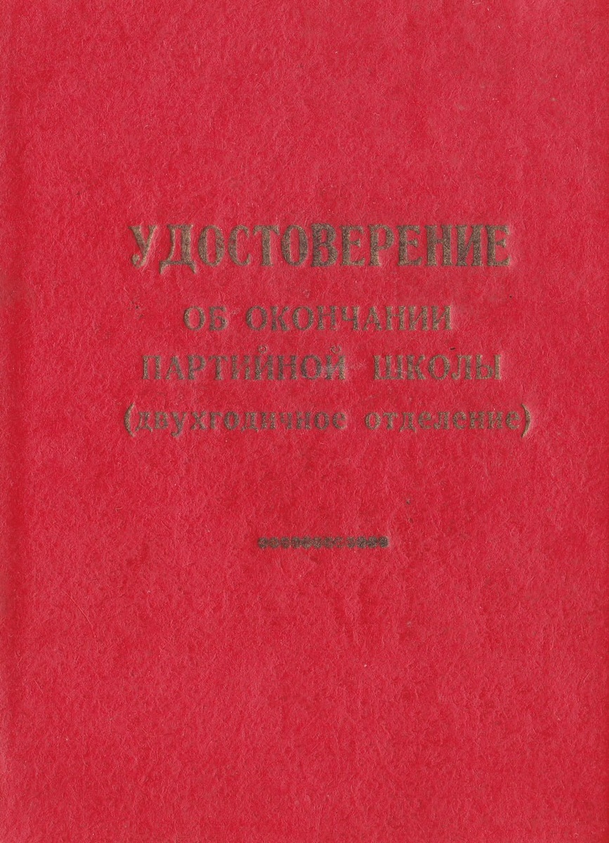 Удостоверение об окончании партийной школы