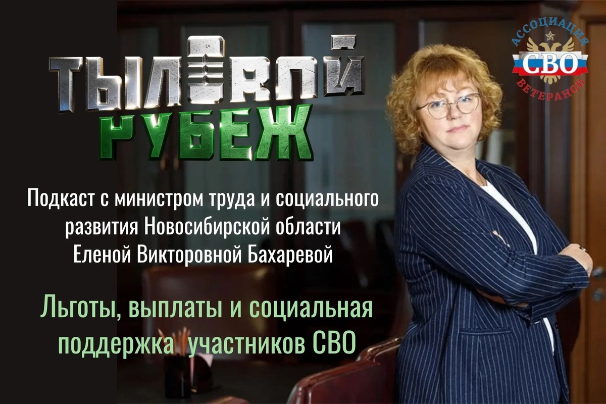 Мы рады сообщить, что прямо сейчас готовим для вас новый выпуск нашего подкаста «Тыловой Рубеж»! На этот раз гостем нашего подкаста станет министр социального развития Новосибирской области Елена Викторовна Бахарева. Это тот человек, который напрямую отвечает за реализацию мер поддержки в регионе для наших бойцов и их семей. О чём поговорим?