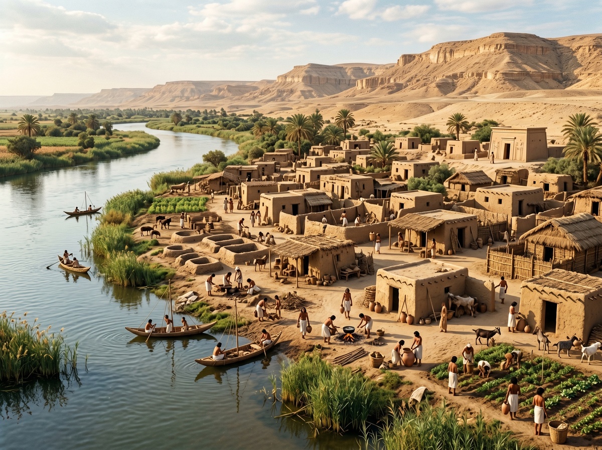 Первые поселенцы пришли в долину не как завоеватели, а как выживальщики. Они ловили рыбу, охотились на гиппопотамов, а потом научились сеять ячмень и эммер — древний вид пшеницы.