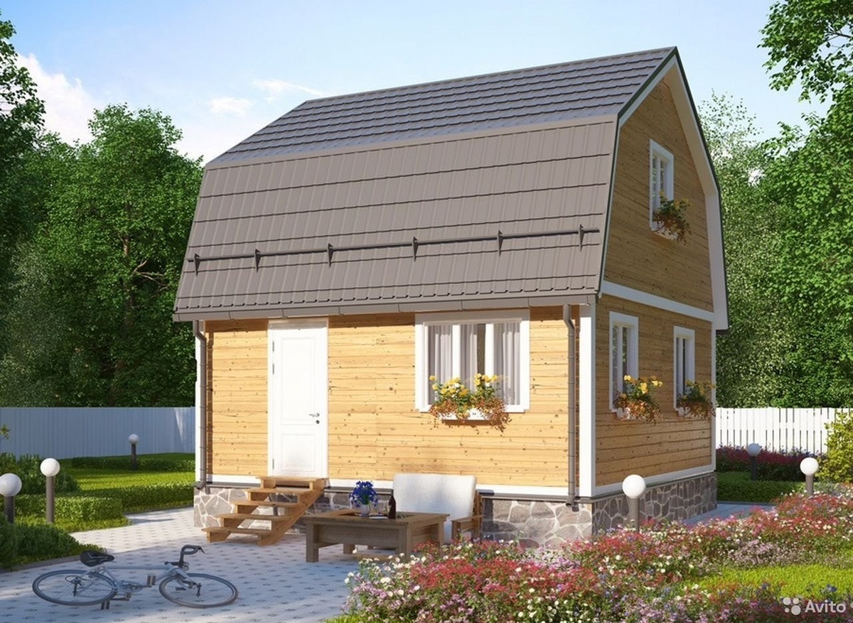 Каркасный дом с мансардой и ломаной крышей, цены для размера 6х4 м