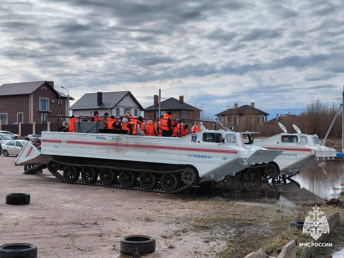 В Рязанской области некоторые населённые пункты на время прохождения весеннего половодья остались без автомобильного сообщения. Чтобы местные жители Заокского не испытывали проблем с продуктами, администрацией Рязанского муниципального округа 16 апреля организовали выездную ярмарку. Продукты питания были доставлены на двух плавающих транспортёрах МЧС России.
