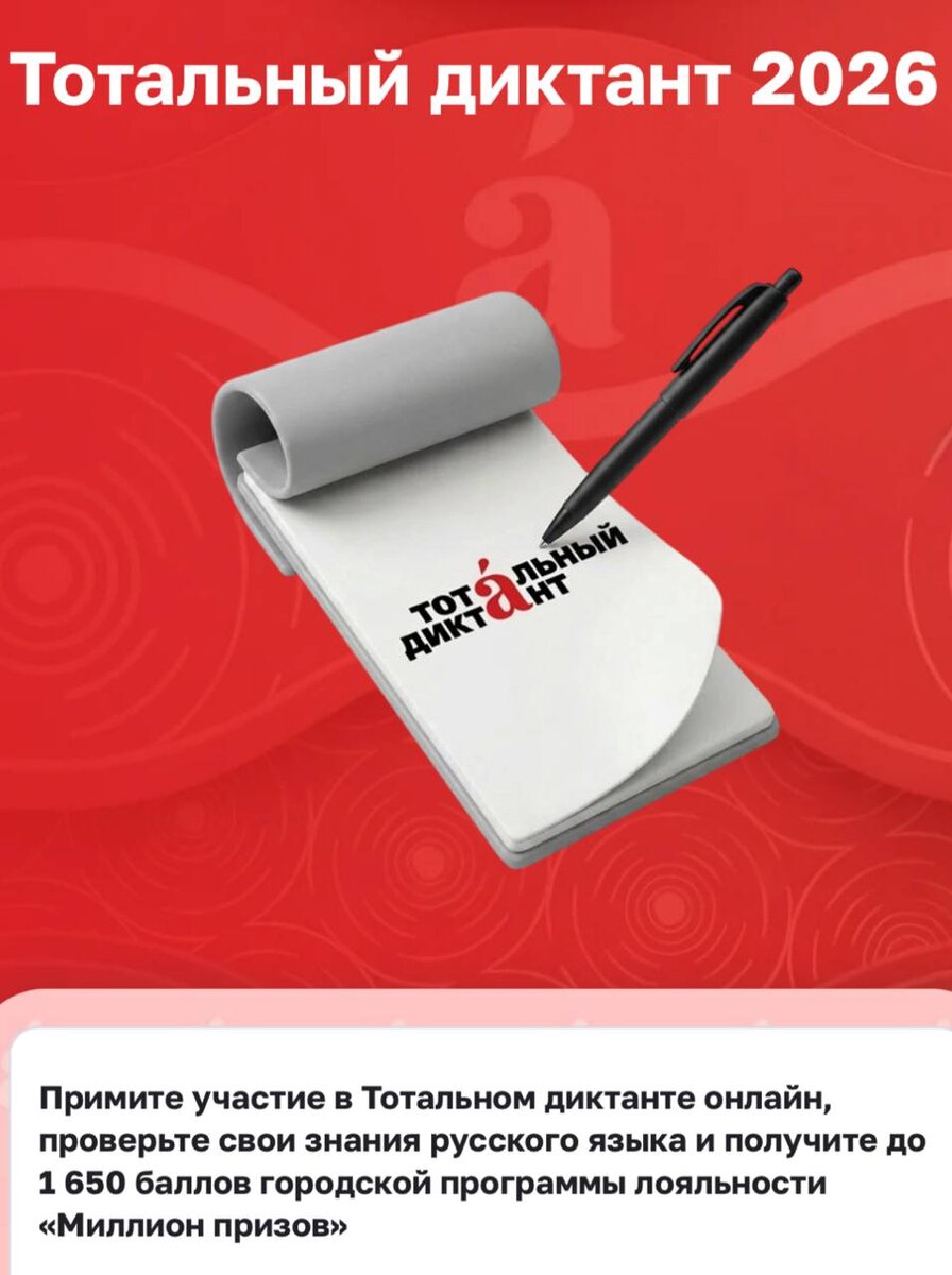 Если вы не можете принять участие в Тотальном диктанте оффлайн 18 апреля, то не упускайте возможность получить до 1650 баллов за участие в онлайн-диктанте. Написать диктант онлайн можно в течение дня и выбрать удобного вам диктующего. В прошлом году практически все, кто писал диктант онлайн, получили хорошо и отлично. И все мы с вами понимаем почему 🙈 Дети от 7 до 13 лет с учетной записью на mos.ru тоже могут принять участие в онлайн-диктанте и получить детские баллы АГшки. Как получить баллы? 👉 18 апреля авторизуйтесь на сайте Тотального диктанта, используя свою учетную запись на портале mos.ru. 👉 Напишите одну из четырех частей текста диктанта онлайн на странице во временном промежутке с 8:00 до 23:00. 👉 После завершения работы нажмите кнопку «Проверить». В случае успешного прохождения проверки вам будут автоматически начислены 150 баллов. 👉 Узнать полученную за диктант оценку вы сможете в период с 20 по 24 апреля в личном кабинете на сайте Тотального диктанта. 👉 В случ