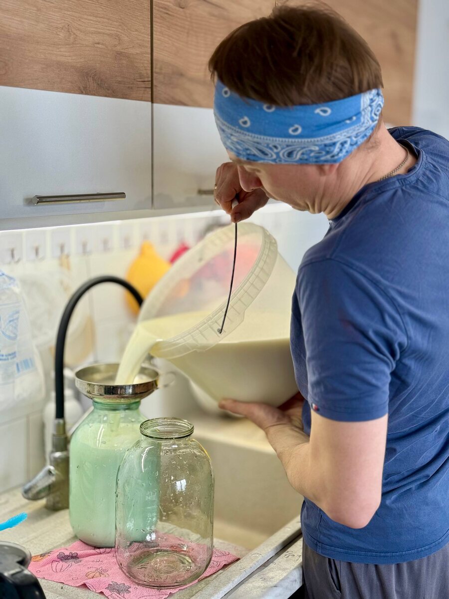 Парное молочко мы сразу перенесли на кухню. Надои наших коров действительно сейчас впечатляют: почти 150 л в сутки. Такой объём требует продуманного подхода к переработке. Мы с Гришей обсудили и пришли к выводу, что целесообразнее всего сепарировать молоко ежедневно. Ну либо сыр варить. Только опять это на мне будет. А пока Гриша может мне помогать с сепарацией, я отдохну.