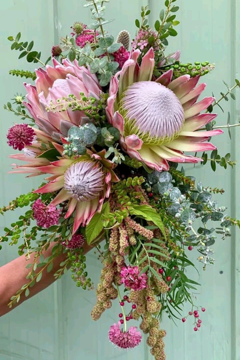 · Свадебные букеты: Протея придает образу невесты экзотичность и роскошь, особенно в стилях рустик или бохо.