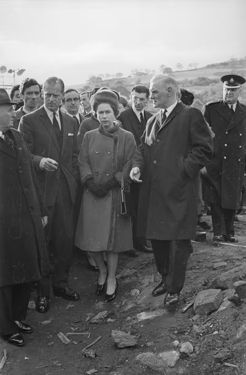 Страна погрузилась в траур, а для королевы Елизаветы это стало одним из самых тяжёлых испытаний за всё время правления. Её первая реакция вызвала критику: она отложила визит в Аберфан на восемь дней и направила туда вместо себя принца Филиппа.