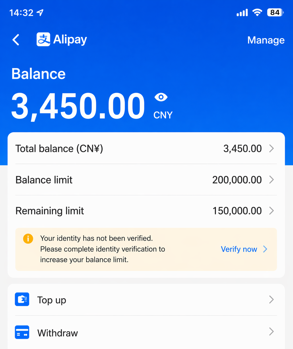 Многие туристы и предприниматели, собираясь в Китай, боятся одной цифры: 200 000 юаней в год. Считается, что как только этот порог пройден, кошелек блокируется, и вы остаетесь без возможности оплатить даже бутылку воды. Но на практике всё интереснее. Как эксперт по платежным системам Китая, я докажу вам: жестких лимитов для «прокачанных» пользователей не существует. Официально для новых аккаунтов установлены следующие рамки: Если вы едете в обычный отпуск на пару недель, этого хватит с запасом. Но если вы планируете закупки, долгое проживание или покупку техники, лимит может закончиться в самый неподходящий момент. Тот самый годовой лимит в 200 000 юаней. В приложении Alipay можно в реальном времени отслеживать, сколько у вас осталось до блокировки транзакций Самая частая причина блокировок в 2026 году — это не превышение лимита, а «грязные» юани. Если вы пополняли баланс через сомнительных посредников в чатах, система безопасности может заморозить счет на любой сумме. Важно: Если вы у