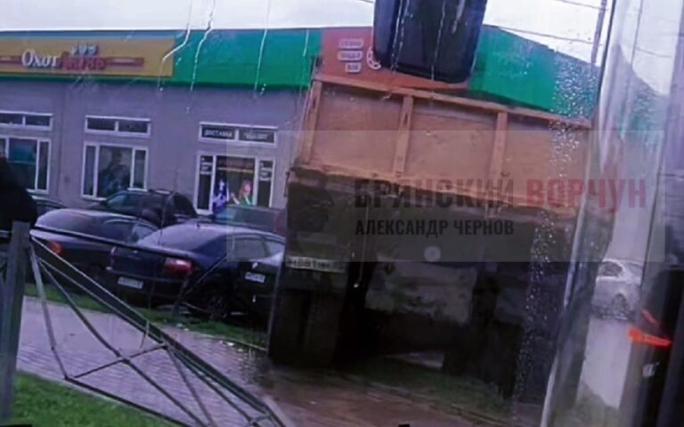 Эксклюзив «Брянского ворчуна»: «взбесившийся» многотонный грузовик-самосвал марки «КамАЗ» вылетел с дороги на проспекте Станке Димитрова, перескочил через тротуар и врезался в машины на парковке у «Пятёрочки». Это страшное дорожно-транспортное происшествие произошло на одном из четырёх городских проспектов Брянска — Станке Димитрова — накануне днём. Однако региональная Госавтоинспекция о нём почему-то не сообщала. Между тем, как стало известно «Брянскому ворчуну» от очевидцев последствий автоаварии, многотонный «КамАЗ» почему-то вылетел с оживлённой дороги, смял непринуждённо металлическое ограждение и перескочил в мгновение ока через тротуар. А через доли секунды огромная грузовая махина «приземлилась» на парковке перед супермаркетом «Пятёрочка» и пунктом доставки суши-роллов. Там «КамАЗ» с предполагаемым госномером «М881ММ 32» врезался в припаркованную легковушку марки «Фольксваген Поло», серьёзно повредив её корпус. — А на Станке Димитрова сегодня весело… — прокомментировал с грусть